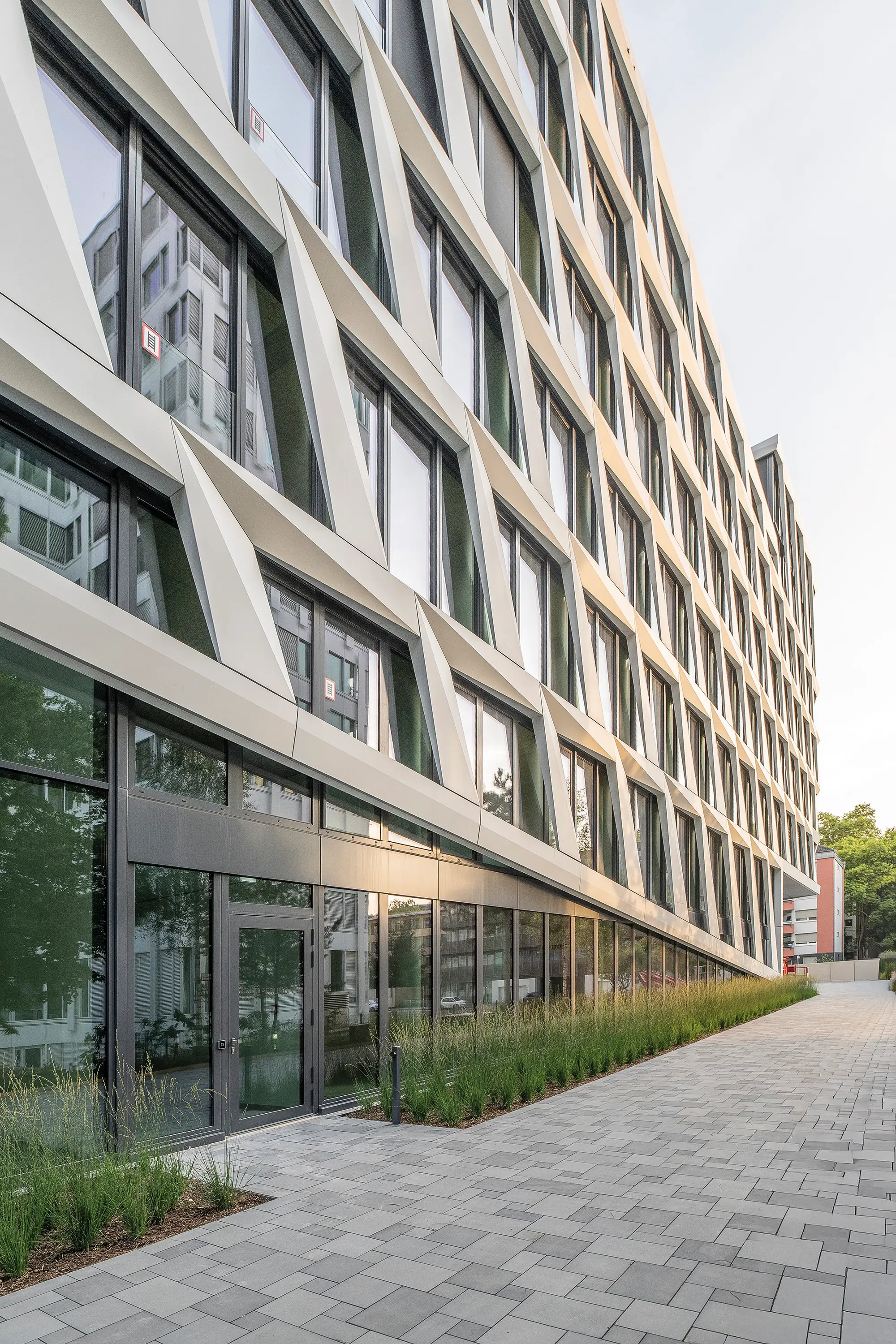 Conçu par HPP Architekten, le bâtiment se distingue par sa façade marquante et son langage architectural dynamique, qui lui confèrent une forte identité visuelle. Développé selon les plus hauts standards ESG, le projet vise à obtenir les certifications LEED Gold et WiredScore Platinum après son achèvement.